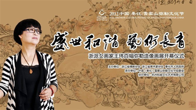由浙江省美術(shù)家協(xié)會(huì)、浙江省佛教協(xié)會(huì)、奉化市人民政府主辦;中國(guó)(奉化)雪竇山彌勒文化節(jié)組委會(huì)承辦;杭州市和昶文化藝術(shù)有限公司協(xié)辦;王瑋女士百幅彌勒佛畫巡回展及畫冊(cè)與同仁和同道們見(jiàn)面了,展覽于2012年9月19日—25日在寧波奉化雪竇山資圣禪寺隆重舉行。這是其為了頌揚(yáng)盛世、倡導(dǎo)和諧社會(huì)的真實(shí)內(nèi)心寫照;敬請(qǐng)同行/朋友光臨觀看指導(dǎo)。