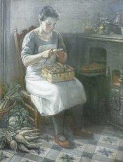 Emile Delobre【"Woman in Kitchen"1920 20x24】