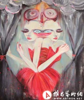 “冥想的洛麗塔”作品是基于一種對(duì)存在意識(shí)的集中審視,做出的一次返璞歸真的自我詮釋。她沖破了一般中國(guó)人認(rèn)為的社會(huì)和諧理論,而走向美國(guó)式的自由人格,經(jīng)驗(yàn)論說(shuō):沒(méi)有自由人格,有知識(shí)的原始人不會(huì)有絲毫進(jìn)步?!奥妍愃钡娜烁癖旧砭褪且粋€(gè)經(jīng)典,加上作者寓其于一種歡樂(lè)的冥想,表現(xiàn)在畫(huà)布中,可以說(shuō)是要表達(dá)一種驕傲的,并且必將走向成功的21世紀(jì)宣言。這也是女權(quán)主義的表示,而畫(huà)面中經(jīng)典的姿態(tài),可能取材于夢(mèng)露或法國(guó)女歌手,總之它將女性之美以自由、自信、與自醒的智慧三位一體的結(jié)合了起來(lái),可謂今年的最好畫(huà)作。