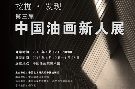 由中國藝術(shù)研究院中國油畫院主辦的第三屆“挖掘?發(fā)現(xiàn)——中國油畫新人展”將于2013年1月12日在中國油畫院美術(shù)館開幕?!巴诰?發(fā)現(xiàn)——中國油畫新人展”是由中國藝術(shù)研究院中國油畫院主辦的全國大型油畫新人新作評選活動,自2009年啟動以來已成功舉辦兩屆,逐步成為在國內(nèi)油畫界具有較高學(xué)術(shù)影響和藝術(shù)水準(zhǔn)的新人選拔活動,是中國油畫院重點(diǎn)打造的學(xué)術(shù)活動品牌之一。