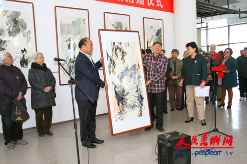 儀式上,高啟光副院長受張志民院長囑托致開幕辭。高啟光副院長首先向齊辛民先生心系母校、支持學(xué)校發(fā)展的精神致以崇高敬意。他說,齊辛民先生是山東藝術(shù)學(xué)院藝專時期的老校友。藝專時期是學(xué)校歷史上具有重要意義的一個階段,揭開了學(xué)校發(fā)展的嶄新一頁。“藝術(shù)家從這里起步。”山東藝術(shù)學(xué)院作為培養(yǎng)藝術(shù)界有生力量的重要平臺,對于齊辛民等莘莘學(xué)子更具有重要意義。55年來,當(dāng)年風(fēng)華正茂的學(xué)子們,在各自的領(lǐng)域取得了令人矚目的成績,為母校爭了光。2011年我們舉辦了“霜重葉紅——山東藝術(shù)學(xué)院藝專時期師生美術(shù)作品展”,取得良好效果。那時,齊辛民先生就踴躍參與,為畫展作出積極貢獻(xiàn)。高啟光副院長指出,齊辛民先生是當(dāng)代中國畫壇具有重要影響的花鳥畫家,取得令人矚目的成就。黨的十七屆六中全會吹響了推動社會主義文化大發(fā)展大繁、建設(shè)中國特色文化強(qiáng)國的進(jìn)軍號。作為畫家,生活在這樣一個時代和社會是幸運的,要有感恩意識,感謝這個時代、感謝這個社會,奉獻(xiàn)社會、服務(wù)時代。去年,單應(yīng)桂先生、張彥青先生的家屬、梁敬泗先生等一批老藝術(shù)家向?qū)W校捐贈了作品;今天,齊辛民先生將自己創(chuàng)作精品捐贈給學(xué)校,這給我們樹立了榜樣。他表示,學(xué)校也會將這些作品保護(hù)好、研究好、利用好。
