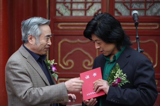 賀茂之將軍為孫志江頒發(fā)遲浩田首長(zhǎng)簽發(fā)的“北京走進(jìn)崇高畫院”證書