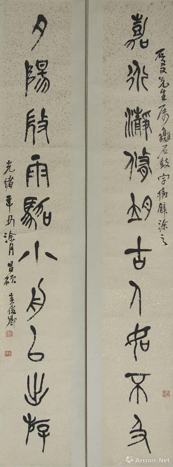 吳昌碩 “嘉行、夕陽”十言聯(lián) 紙本 篆書 縱159.9cm 橫24cm