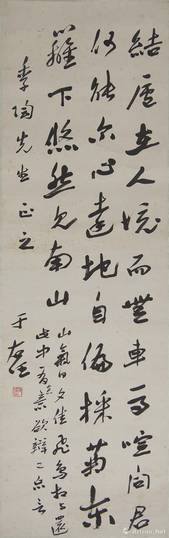 于右任 陶淵明《飲酒·其五》軸 紙本 草書 縱121cm 橫38cm