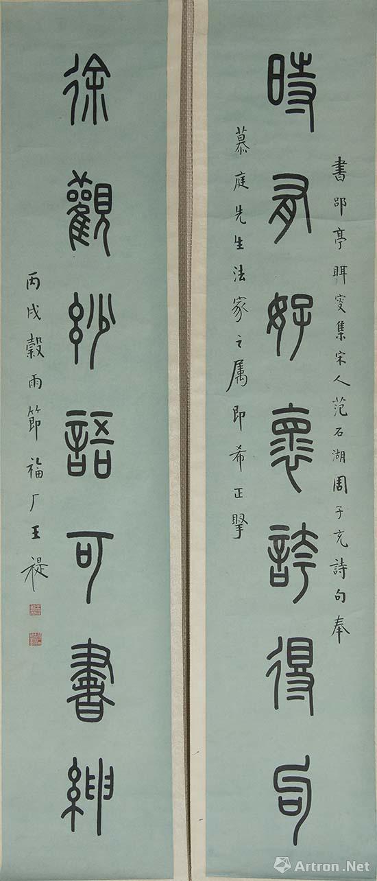 王褆 “時有、徐觀”七言聯(lián) 紙本 篆書 縱132.8cm 橫26.7cm 1946年