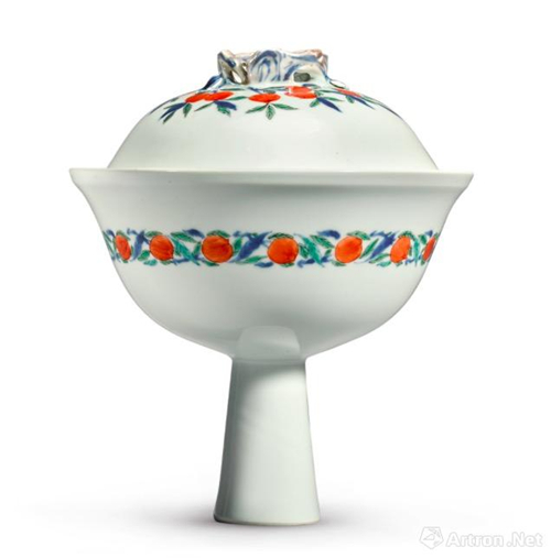 清康熙 五彩壽桃紋高足蓋盌 15萬美元 15-25萬美元