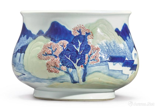 清康熙 釉里三彩湖山獨(dú)釣圖爐 《大清康熙年製》款 12.5萬美元 15-25萬美元