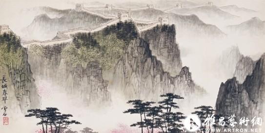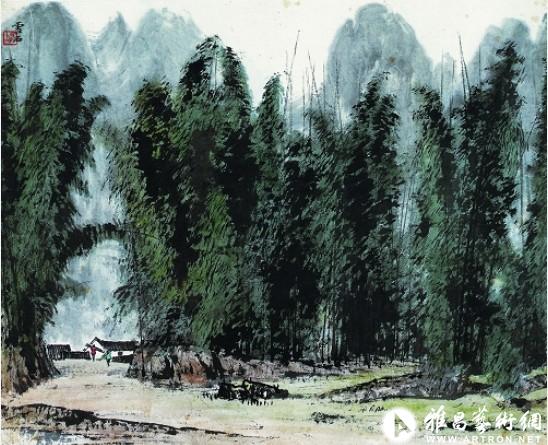 從傳統(tǒng)中走出來的白雪石先生很好的借鑒了西方繪畫中寫生方法,同時又繼承了中國古人“搜盡奇峰打草稿”的創(chuàng)作精神。面對名山大川不僅僅是尊重再現(xiàn)式的表達,而是注重傳達山水意蘊的再創(chuàng)造。白雪石先生把自己走過的地方都變成自己筆下的山水佳構(gòu),黃山松云、太行燕山、湘西勝景……可以說白雪石先生的山水畫創(chuàng)作達到了“千峰競秀”的境界,然而真正代表他最高藝術(shù)成就的是被世人所稱道的“白家漓江”。1973年白雪石應(yīng)國務(wù)院機關(guān)事務(wù)管理局邀請,赴廣西桂林沿漓江兩岸徒步旅行寫生,至此開始創(chuàng)作“漓江山水系列”,創(chuàng)作的三十余幅小品在政協(xié)禮堂作觀摩展出,桂林各界人士贊譽“巧裁桂林千峰秀,妙剪漓江一段云”。