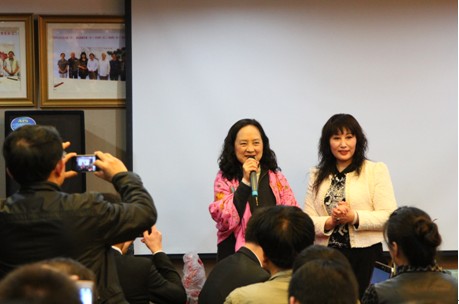 著名影星、當(dāng)代著名畫家張金玲女士(左一)現(xiàn)場講話