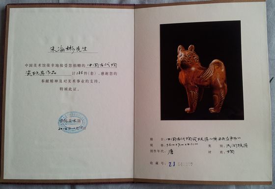 朱海彬先生向中國美術館捐贈了收藏多年的古代雕塑精品186件(套),文化部門領導和專家對朱海彬的奉獻精神及對博物館和美術事業(yè)的支持給予高度評價。日前,中國美術館向朱海彬頒發(fā)了榮譽捐贈證書。