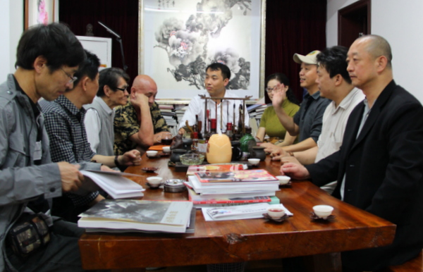 現(xiàn)場(chǎng)氣氛熱烈,各自在談?wù)摰耐瑫r(shí)相互碰撞出藝術(shù)創(chuàng)作新與舊的火花。嘉遠(yuǎn)藝術(shù)會(huì)所總策劃馬境主要從收藏的角度給予自己對(duì)牡丹作品收藏價(jià)值的看法。在談到中西方繪畫創(chuàng)作思維的異同,美籍華人畫家何可人從現(xiàn)代思維與傳統(tǒng)思維的矛盾說起,結(jié)合畫家凡飛的牡丹花水墨作品,指出了作品中存在的一些問題,提出自己的意見。