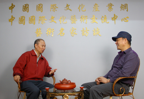 香港新商報(bào)主編鐵漢專訪畫家梅建業(yè)(左) (記者刁曉平 攝)