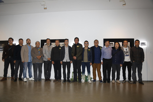 左起:藝術(shù)家孫浩、藝術(shù)家秦修平、藝術(shù)家杜小同、東方藝術(shù)國(guó)畫(huà)主編楊建國(guó)老師、今日美術(shù)館館長(zhǎng)高鵬、策展人杭春曉、魯迅美術(shù)學(xué)院中國(guó)畫(huà)系教授李彥伯、藝術(shù)家王煜、魯迅美術(shù)學(xué)院中國(guó)畫(huà)系教授陳蘇平、出品人苗壯、玉衡藝術(shù)中心王剛先生、藝術(shù)家劉琦、藝術(shù)家杭春暉、藝術(shù)家徐加存