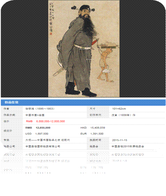 據(jù)廣州榮古齋市場部介紹:此徐悲鴻款天師捉鬼圖實(shí)屬難得,保存完好,剛推出市場不久就得到了許多收藏愛好者的贊賞,將會亮相勞倫斯香港秋季拍賣會。