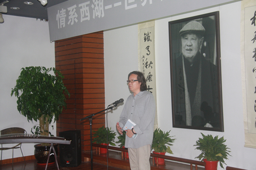 接著由杭州名人紀念館館長翁中華女士致辭,她說,洛夫先生生前心系杭州,情系西湖。他曾經(jīng)在杭州的虎跑泉一邊躲雨,一邊品味著“情緣不絕,與西湖世世為夫妻的”一壺上好龍井,寫下了“雷峰塔里塔外的韻事二三”,在杭州他寫下名詩《杭州紙扇》,還曾兩度來到唐云藝術館,為我們寫下相約西湖的美好詩篇,留下《斷橋六行》的絕唱。他的詩碑,永久矗立在萬松書院成為經(jīng)久的文化盛典,也為西湖文化景觀遺產(chǎn)增添了一份人文情懷。