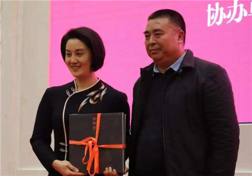 浙江省美協(xié)副主席兼秘書長駱獻(xiàn)躍向浙江小百花越劇院院長王濱梅贈(zèng)送畫冊