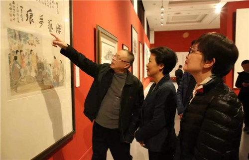 浙江省政協(xié)主席葛慧君,浙江省文聯(lián)黨組書記、副主席、書記處常務(wù)書記陳瑤參觀展覽