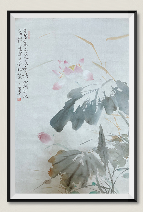 ▌周 青《雨裛紅蕖冉冉香》69 × 42 cm
