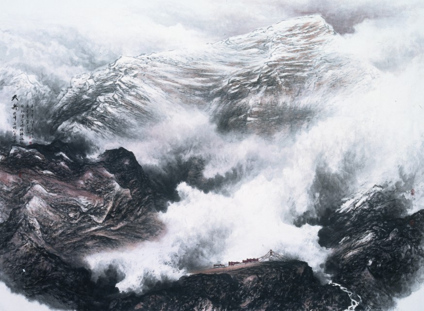 朱頌民的繪畫,能讓我們閱讀到一種禪味,一種經(jīng)過雪域山川凈化之后澄明的心境與豁達(dá)的心胸。他將情感融之于筆,筆觸所及,自然流露其對(duì)一座座神山的敬畏、對(duì)雪域景致的膜拜。這正是其作品打動(dòng)觀者的關(guān)鍵。
