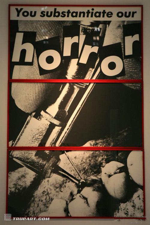 芭芭拉·克魯格 《無題》中這樣一句話:You substantiate our horror(你證實(shí)我們的恐怖),這幅畫面中的牙鉆,反映了現(xiàn)實(shí)生活給人們造成的恐怖感。