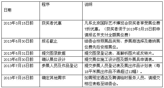 1.申請(qǐng):即日起至2013年5月30日。申請(qǐng)參展須提交附件中的參展申請(qǐng)表,填寫完整并由負(fù)責(zé)人簽字后生效。