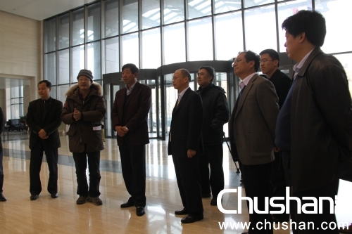 中國鐵建總裁張宗言(左一)與黨委宣傳部長錢桂林(右二)溝通交流