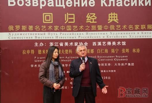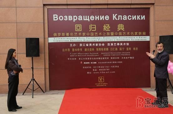 2013年4月20日,“回歸經(jīng)典——俄羅斯著名油畫家中國(guó)藝術(shù)之旅暨中俄油畫名家聯(lián)展”在西溪藝得美術(shù)館隆重開幕。開幕式盛況空前,俄羅斯聯(lián)邦駐上??傤I(lǐng)事館副總領(lǐng)事巴甫洛夫先生及副總領(lǐng)事錢金先生、浙江省委宣傳部副部長(zhǎng)來穎杰先生、浙江省文學(xué)與藝術(shù)聯(lián)合會(huì)黨組書記高克明先生、浙江省委省政府接待辦副主任沈堅(jiān)先生、浙江油畫協(xié)會(huì)主席楊參軍先生、浙江美術(shù)家協(xié)會(huì)主席潘鴻海先生以及政界、商界、學(xué)界的代表100余人參加了開幕式。