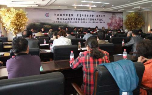為了弘揚中華傳統(tǒng)書畫藝術,更好的為中原經濟區(qū)建設服務。2013年4月28日,由河南省儒學文化促進會主辦、鄭州市青龍山慈云寺風景區(qū)承辦的河南國學書畫院(國學書畫專業(yè)委員會)成立大會暨青龍山慈云寺風景區(qū)藝術創(chuàng)作基地授牌儀式,在鞏義市大峪溝鎮(zhèn)青龍山舉行。河南省儒學文化促進會名譽會長、河南省政協(xié)原副主席郭國三同志、河南省儒學文化促進會執(zhí)行會長、中州大學原黨委書記、校長王廷信同志和來自省內外河南籍書畫藝術專家60余人,人民網河南頻道、中國日報河南記者站、河南日報、河南省電視臺、河南省廣播電臺、大河報社、河南科技報社、河南文化網、鄭州日報社、鄭州市電視臺、鞏義市電視臺、鞏義市廣播電臺等多家媒體參加了會議。