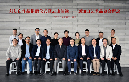 孤峰頂上,道法自然,云山清遠。劉知白的藝術(shù)成就成為專家學(xué)者們思辯的關(guān)注熱點。適逢浙江大學(xué)125周年校慶之際,5月24日上午在浙江大學(xué)藝術(shù)與考古博物館舉辦了劉知白作品捐贈儀式,浙江大學(xué)黨委副書記葉民和第十屆杭州市政協(xié)主席葉明出席活動并致辭。浙江大學(xué)圖書館館長樓含松和浙大藝術(shù)與考古博物館館長劉斌發(fā)表了熱情洋溢的講話。建設(shè)銀行總行原副行長余靜波,浙江大學(xué)發(fā)展委員會副主席李培培,中國囯家畫院院委、中國美院原副院長劉健,浙大藝術(shù)與考古學(xué)院黨委書記方志偉,浙大藝術(shù)與考古博物館常務(wù)副館長馬景娣,浙大藝術(shù)與考古學(xué)院教授、美術(shù)系主任池長慶,劉知白學(xué)生、杭州師范大學(xué)美術(shù)學(xué)院教授孔耘,劉知白先生弟子、貴州省美協(xié)理論委員會原副主任安朝剛,浙大藝術(shù)與考古學(xué)院美術(shù)系副主任、副教授吳強等和收藏家應(yīng)忠良、胡德林、胡關(guān)妙等嘉賓與會。捐贈者劉維陽是劉知白先生第十一子,因工作原因,委托周岳平先生宣讀了充滿情懷的發(fā)言。捐贈儀式由浙江大學(xué)發(fā)展聯(lián)絡(luò)辦副主任、浙大教育基金會副秘書長丁海忠主持。