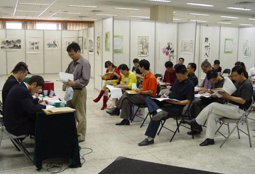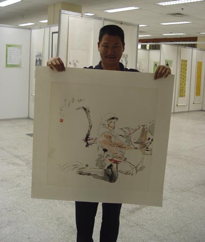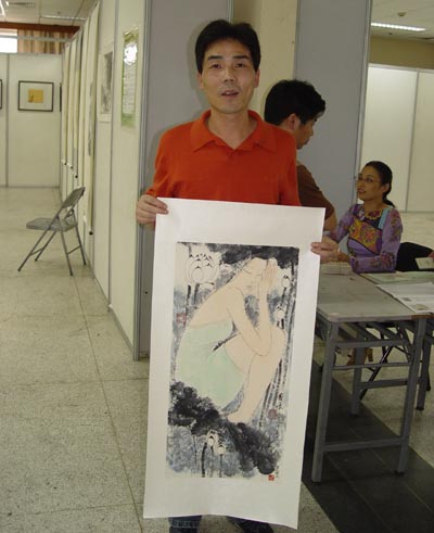 本站訊 2006秋季“藏畫于民”聯(lián)誼活動于9月30日下午在浙江圖書館拉下帷幕。此次活動參與者眾多,尤其是許多外地朋友專程趕來杭州,就為一試運氣。如第一個上來摸獎的朋友就是從紹興特地趕來,他的運氣真還不錯,一摸就摸中了中國美院國畫系山水教研室主任張偉平教授的一幅《秋林獨步圖》。摸獎活動快接近尾聲時,一位只購買了一張摸畫券的女士,竟一舉摸中了001號陽太陽的《春雨》圖,真是非常的幸運,活動氣氛也由此達(dá)到了高潮。許多精彩作品都被幸運者紛紛摸走。
