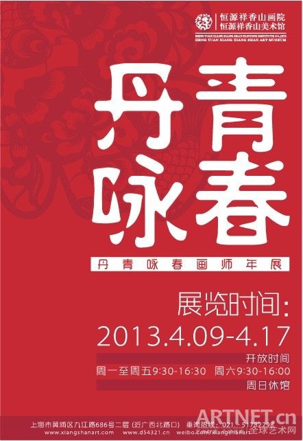 為了增進(jìn)畫院畫師之間和社會(huì)藝術(shù)愛好者之間的藝術(shù)交流,感謝各位畫師在這一年中對(duì)上海恒源祥香山畫院及美術(shù)館的支持,由恒源祥香山畫院主辦的《丹青詠春——2013上海恒源祥香山畫院畫師年展》將于2013年4月9日在九江路686號(hào)正式開幕。畫師熱情的參與,為廣大藝術(shù)愛好者和收藏家獻(xiàn)上一場(chǎng)難忘的藝術(shù)盛宴。