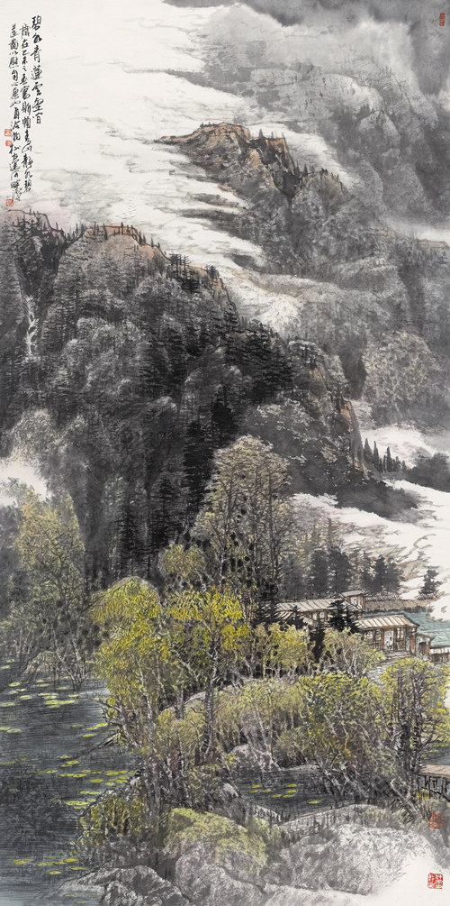 其三,西方畫家,只要能畫出自己風(fēng)格和動(dòng)人的作品,就能稱得上一個(gè)優(yōu)秀的畫家。但是,作為一個(gè)優(yōu)秀的中國畫家在畫面上除了體現(xiàn)作者的風(fēng)格(筆墨與形式的創(chuàng)造),在創(chuàng)作出動(dòng)人的作品之外,還必須有較高文學(xué)修養(yǎng),要有漂亮的文句和精彩的書法展現(xiàn)在其作品的款識(shí)之中,作為藝術(shù)作品的重要組成部分,支撐著作品的整體文化內(nèi)涵與藝術(shù)含量。甚至一個(gè)好的畫家要“詩書畫印”樣樣精通,這幾點(diǎn)上的講究是任何畫種不可比試的,亦是凸顯東方文化審美思想中特有的民族性。點(diǎn)睛說,畫家筆下的山,既不完全是純天然的山,也不是只在我宋柏松心中的山,還要兼顧普羅大眾心目審美的山,這才有審美共鳴發(fā)生。這個(gè)就難了沒有現(xiàn)成的公式可循,需要探索。因?yàn)楫嫴皇侵唤o我一個(gè)人看的,而它要走上社會(huì),起到文化傳播之功能。從表現(xiàn)意義上說顧愷之的傳神論有道理,但不是理論終結(jié),美術(shù)理論界也需要與時(shí)俱進(jìn)有新的建樹。