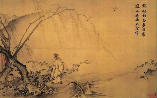 文人雅士的春游則有所不同,他們看中的并非外在的華麗與富貴,更重要的是內心的平靜與富足。宋代畫家馬遠的《山際春行圖》,描繪了文人漫步在春日靜謐的山徑中的場景。圖中柳樹的枝條隨風搖曳,桃花蓓蕾初綻,林中小鳥歡快嬉鬧。