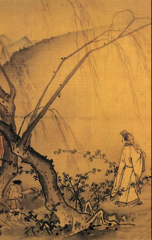 仇英《桃村草堂圖》,絹本設色,150×53cm,明代,北京故宮博物館藏