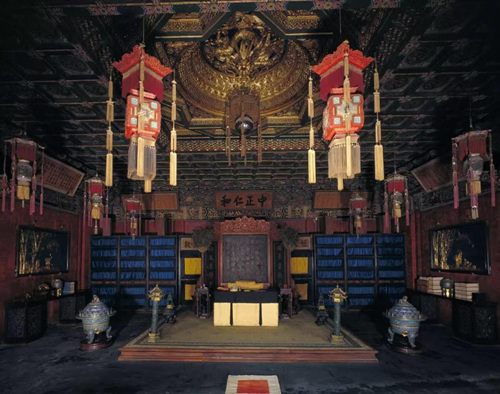 后殿靠墻部分按道光時(shí)的陳設(shè)恢復(fù):“中室列龕三,奉太祖、太宗、世祖;左一室龕二,奉圣祖、高宗;右一室龕二,奉世宗、仁宗。昭穆仍舊制,余四室分列八龕焉?!睌M恢復(fù)5間11室原狀陳設(shè)。