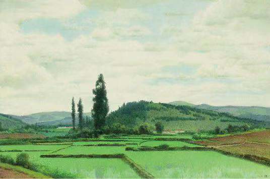 他在創(chuàng)作時(shí)有自己的意圖,色彩有力度,鮮活,很好看。對(duì)風(fēng)景的時(shí)間有感覺,如雪景、春天、秋天,對(duì)于綠顏色,這種滿載生命的顏色,表現(xiàn)得很有品味,幾幅大的作品也很精彩。
