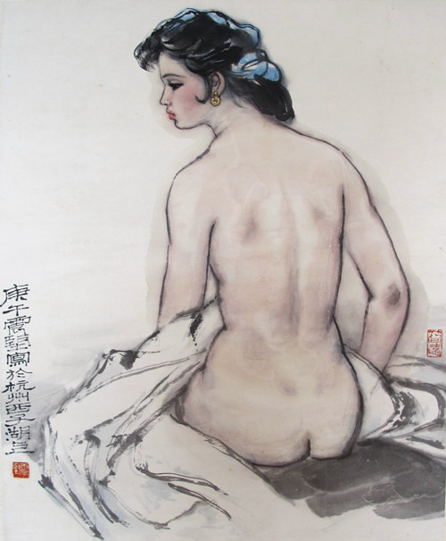 ▌李奇茂《西湖荷放映小嬌》 137 × 68.5cm