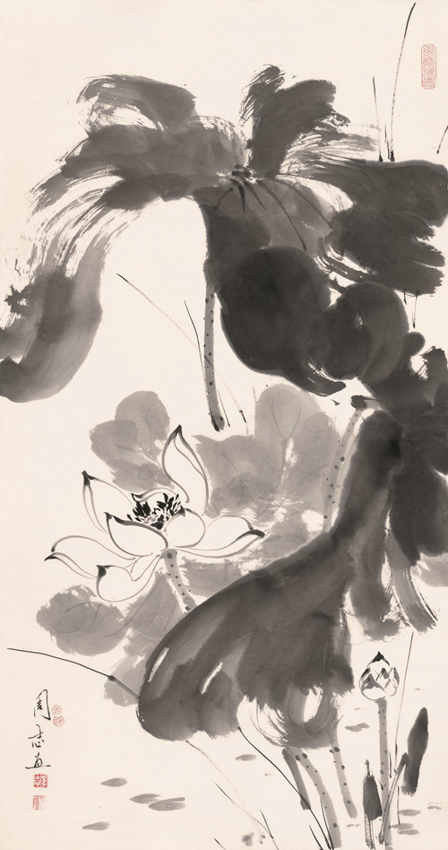 ▌周天黎《西湖風(fēng)荷伴忠魂》 138 × 69cm