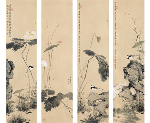 ▌羅劍華《荷塘清趣》 138.5 × 35cm × 4
