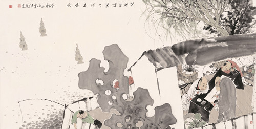 ▌張恒《東坡詩意圖》 34×102cm ×2