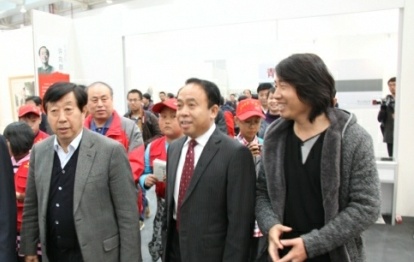 藝術(shù)家孟剛陪同中國(guó)美術(shù)家協(xié)會(huì)主席劉大為等領(lǐng)導(dǎo)人一起觀展