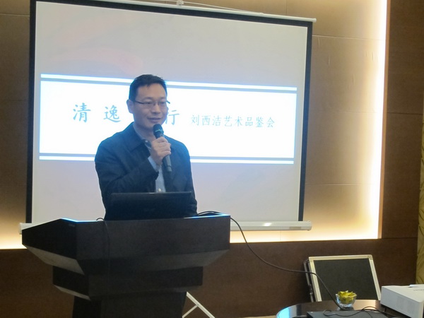 該品鑒會由劉西潔作品展,劉西潔講藝術(shù),藝術(shù)理財沙龍三部分組成。劉西潔系西安美院國畫系副主任、碩士研究生導(dǎo)師,是著名的人物畫家,在傳統(tǒng)人物畫及當(dāng)代水墨人物的創(chuàng)作中獨樹一幟。其筆下的王羲之、張僧繇、陶淵明、蘇東坡等魏晉群賢、唐宋名士形象生動,以形寫神、逸筆草草、吳帶當(dāng)風(fēng),頗為灑脫飄逸。他的當(dāng)代水墨人物不僅刻畫了生旦凈丑,而且描繪了當(dāng)代人的生活,高跟鞋女郎、倒立的男孩、時尚的先生,一一入畫。簡言之,劉西潔的藝術(shù)穿梭于古今之間,游刃中西。