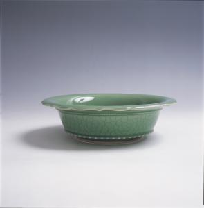 作品名: 刻葵紋折邊洗(龍泉青瓷)