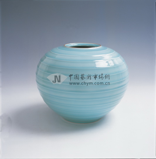 作品名: 粉青弦紋瓶(龍泉青瓷)