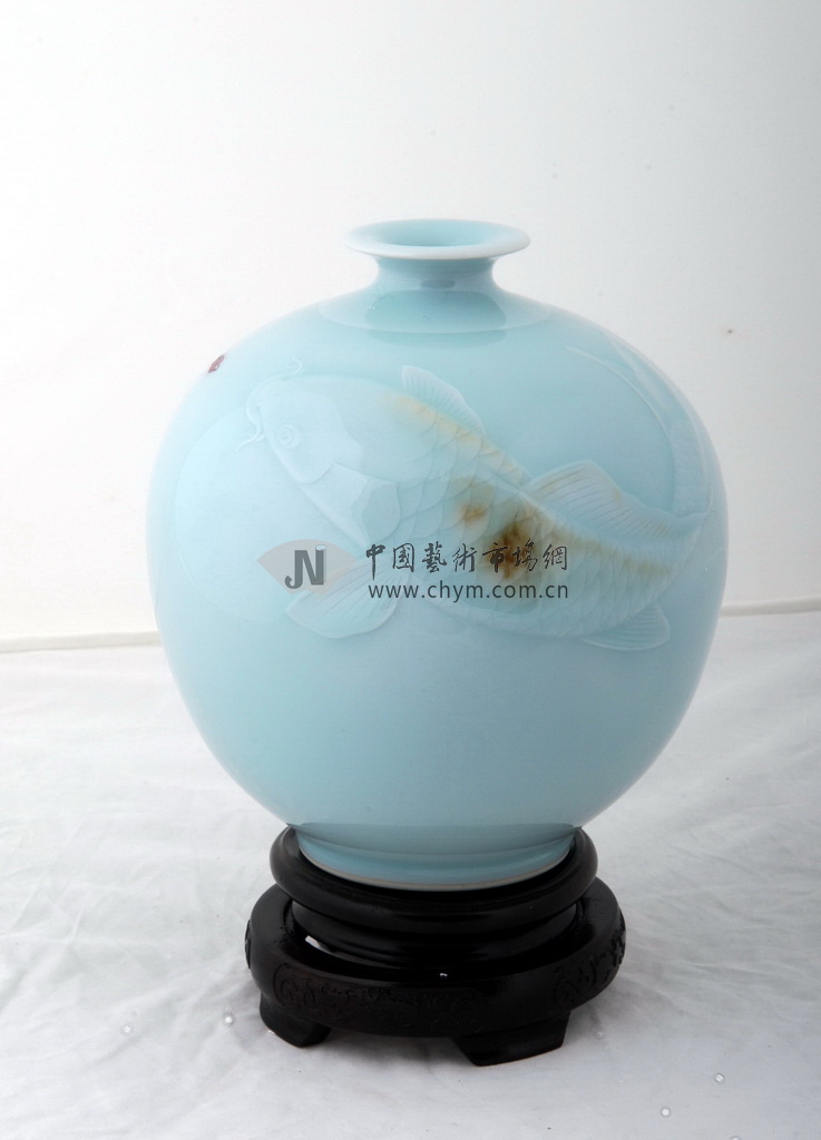 作品名: 甌江彩鯉珍珠瓶(粉青)