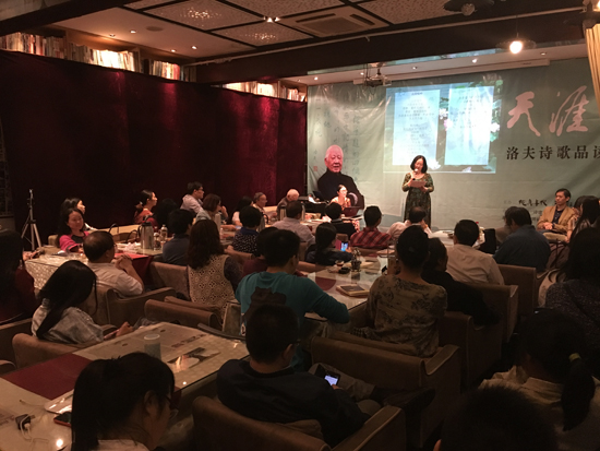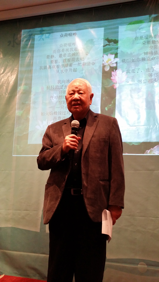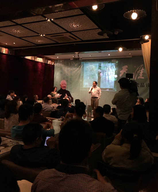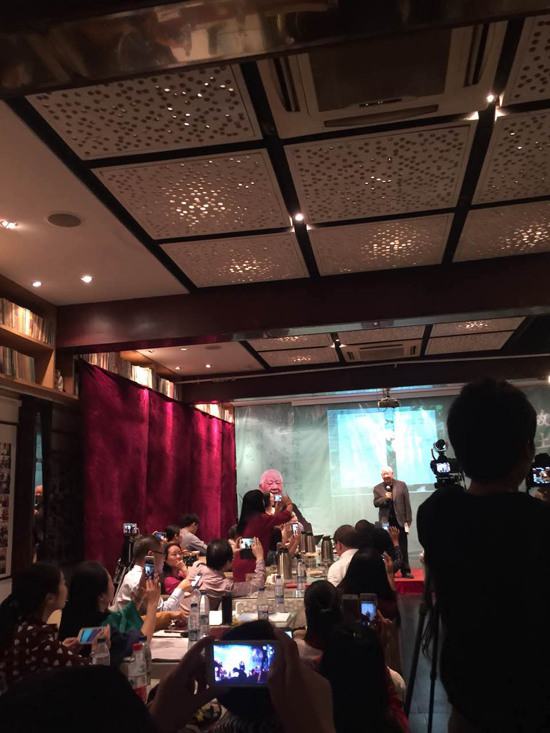 晚會活動開始時,人們擠滿了整個大廳,活動首先由著名文化推廣人、溫哥華中華文化藝術基金會常務副主席兼秘書長、《天涯美學》主編周岳平先生致辭,活動由“純真年代書吧”創(chuàng)始人,資深學者兼主持人朱錦繡教授主持?;顒又醒堉亓考壖钨e洛夫作講話,他提出了希望各方齊努力,打造杭州市為“詩歌之都”。活動貫穿有書法鑒賞,有詩歌朗誦,有專家學者龍彼得對洛夫詩文品讀,整個活動充滿了濃郁的文藝氣氛,熱烈而溫馨。當簽名售書環(huán)節(jié)正式開始時,人們聚攏在洛夫周圍,簽字、握手、合影,祝福,將整場晚會推向高潮。甚至連窗外都站滿了熱心的書法愛好者和廣大文藝青年,熱烈的掌聲從室內到室外匯成一片。