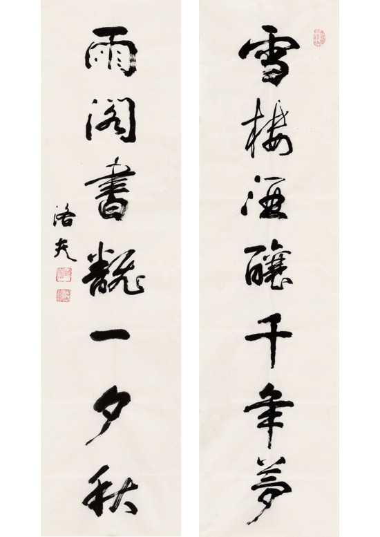 雪樓/雨閣 對聯(lián) 138×35cm×2
