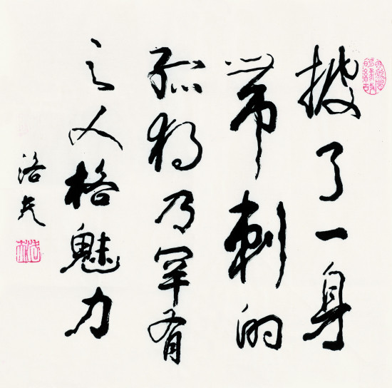 洛夫之書法,一面透著雄杰豪邁,一股剛健郁勃之氣,另一面又有婉約飛動的行草,韻格高古,雋永而耐人尋味,在當代書壇獨樹一幟。具體來說: