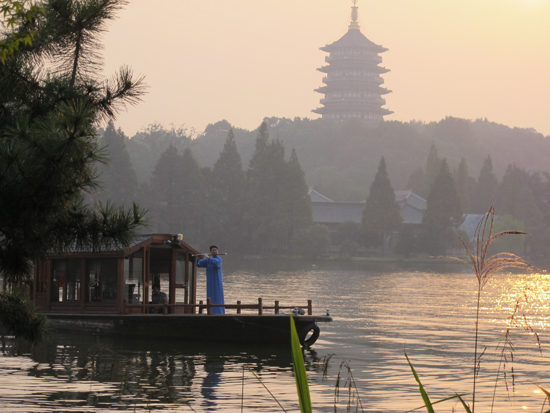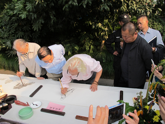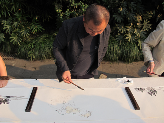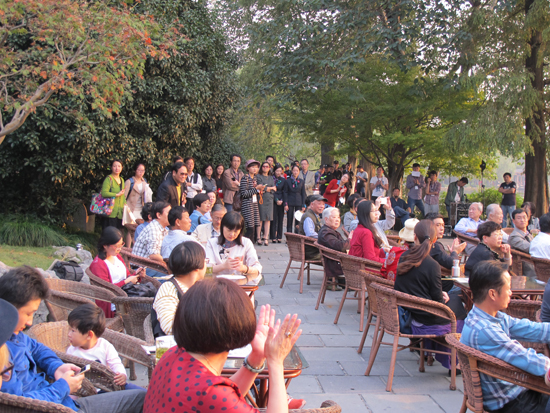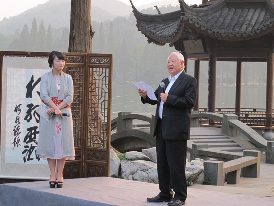 15日當(dāng)天的“相約西湖開幕式”暨“西湖人文山水雅集”活動(dòng)在南山路45號(hào)唐云藝術(shù)館舉行。十位來自全國的知名書畫家在長卷上描繪“我心中的西湖十景”,整個(gè)活動(dòng)現(xiàn)場會(huì)被濃濃的中國傳統(tǒng)文化氣息包圍。下午4點(diǎn),“雷峰夕照”天然舞臺(tái)背景下活動(dòng)大幕開啟。藝術(shù)名家與西湖名人后裔、市民代表等齊聚于此,共賞西湖美景,欣賞江南笛王杜如松的《漁笛清幽》;在長橋邊,雷峰塔下聆聽越劇《白蛇傳》選段;主持人與洛夫,西湖名人后裔等嘉賓展開互動(dòng),共話西湖的山水人文情懷,開幕式活動(dòng)本身就是一幅優(yōu)雅而豐盈的畫卷。