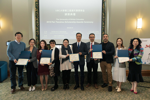 頒獎嘉賓及本次UBC潘天壽獎學(xué)金獲獎?wù)吆嫌?/span>